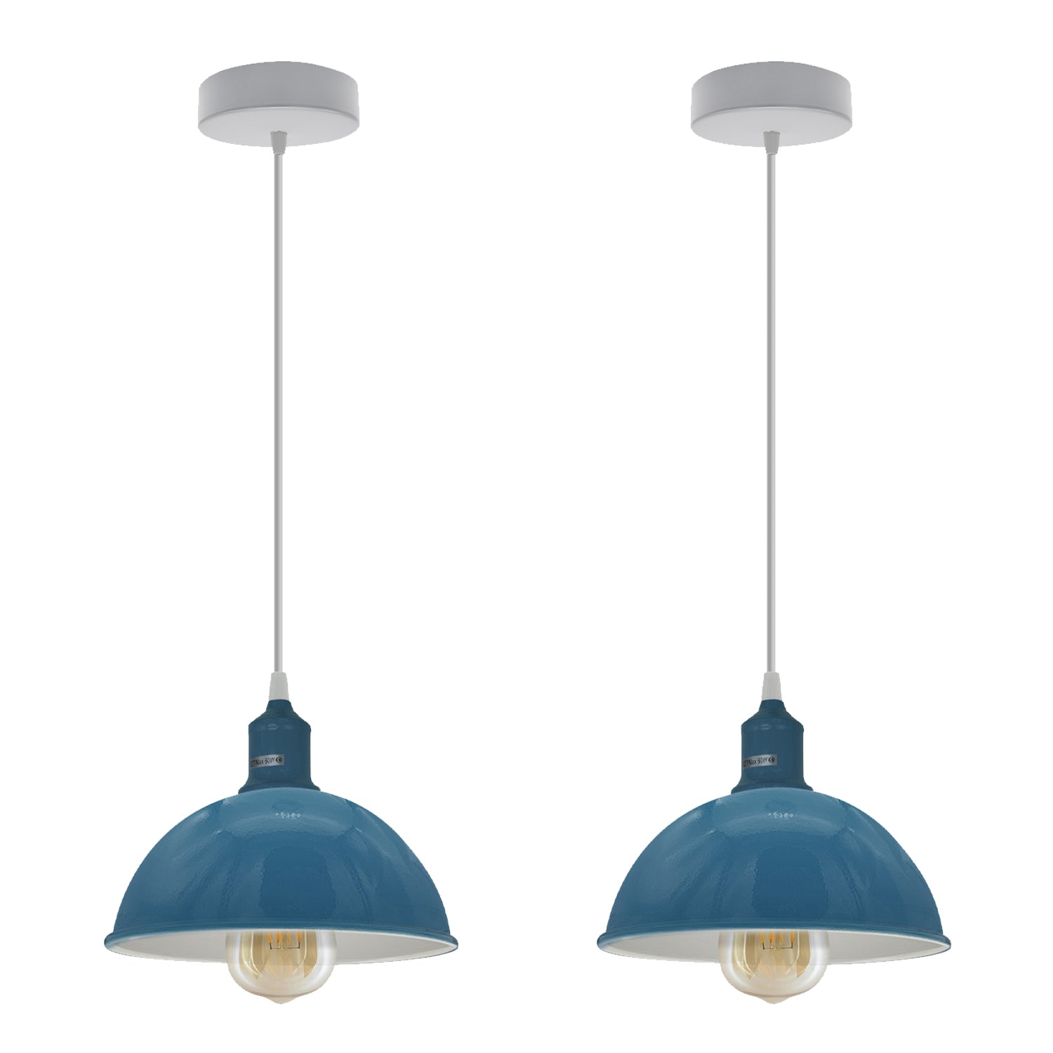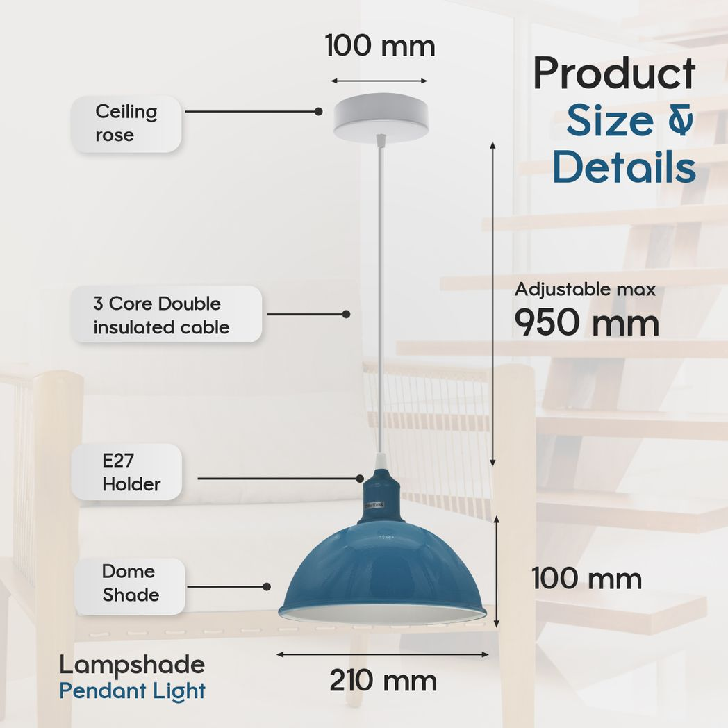 2Pack Dome Shaped Cyan Blue Loft Sturdy Metal Lamp Shade Pendant Light 21cm Bottom Spray Painted Finish Inner White