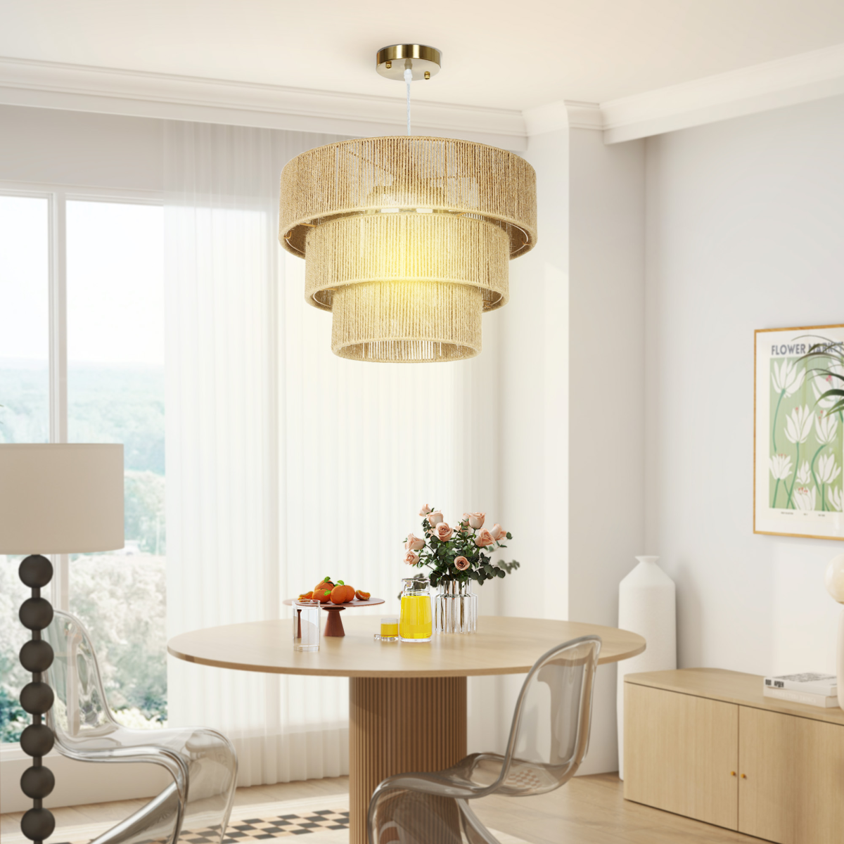 ● Boho style adds chic aesthetic to any room ● Three-tier hemp rope lampshade creates a textured...