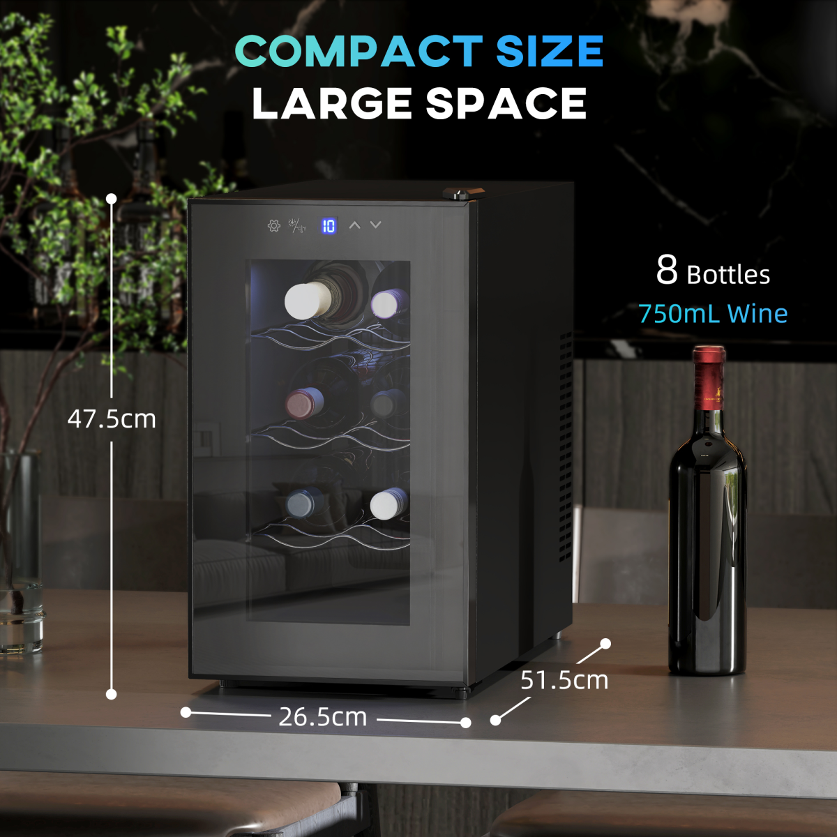 Freestanding Wine Cooler Fridge with 8 Bottle, 21 Litre Capacity