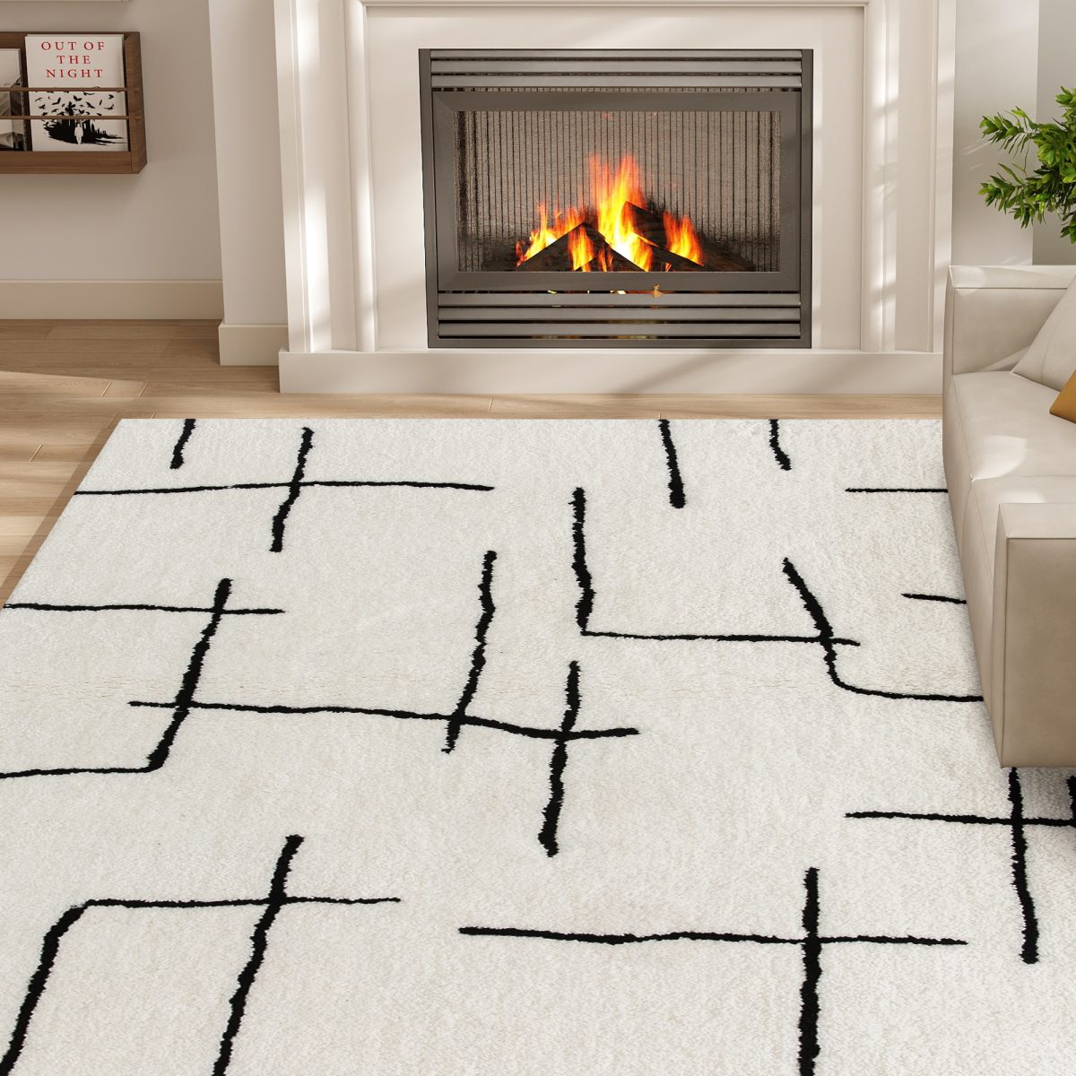 High Pile Modern Shaggy Rug, Soft Floor Carpet 120 x 170 cm, Cream