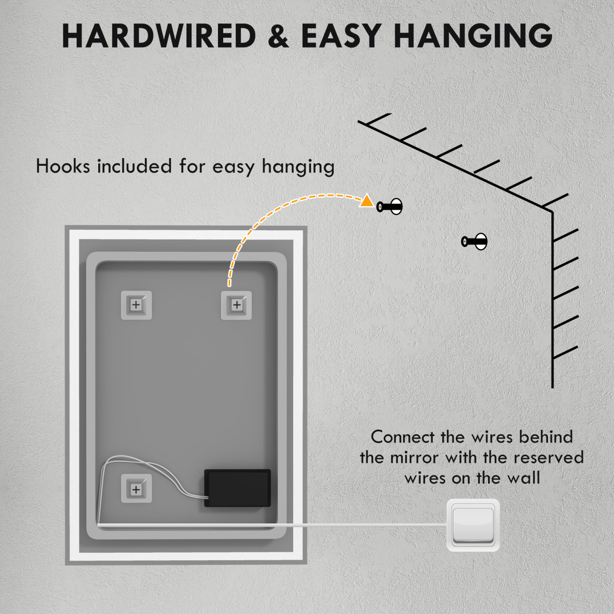 Illuminated Bathroom Mirror with LED Lights, 3 Colours, Defogging Film