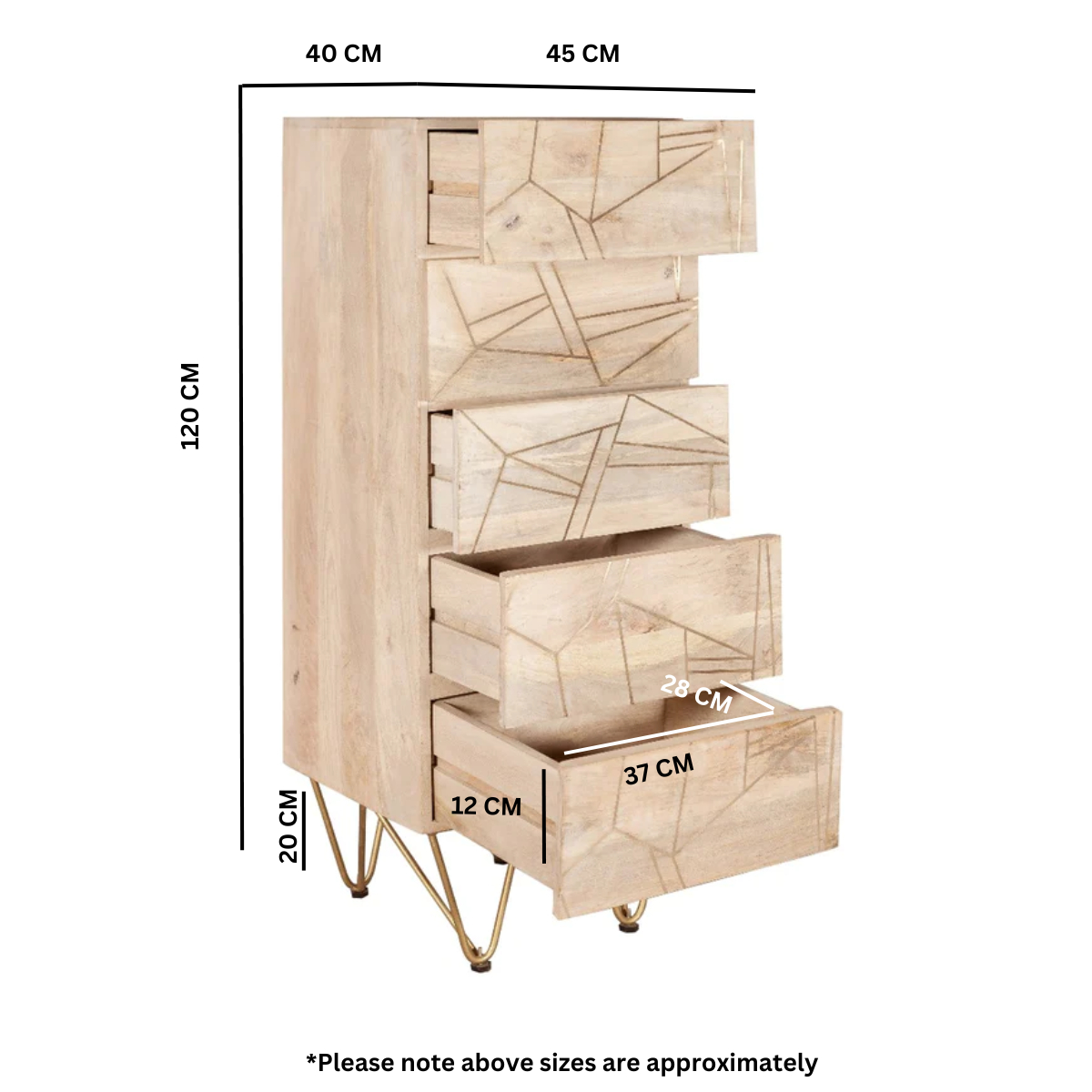 Light Gold Tall Chest Of Drawers