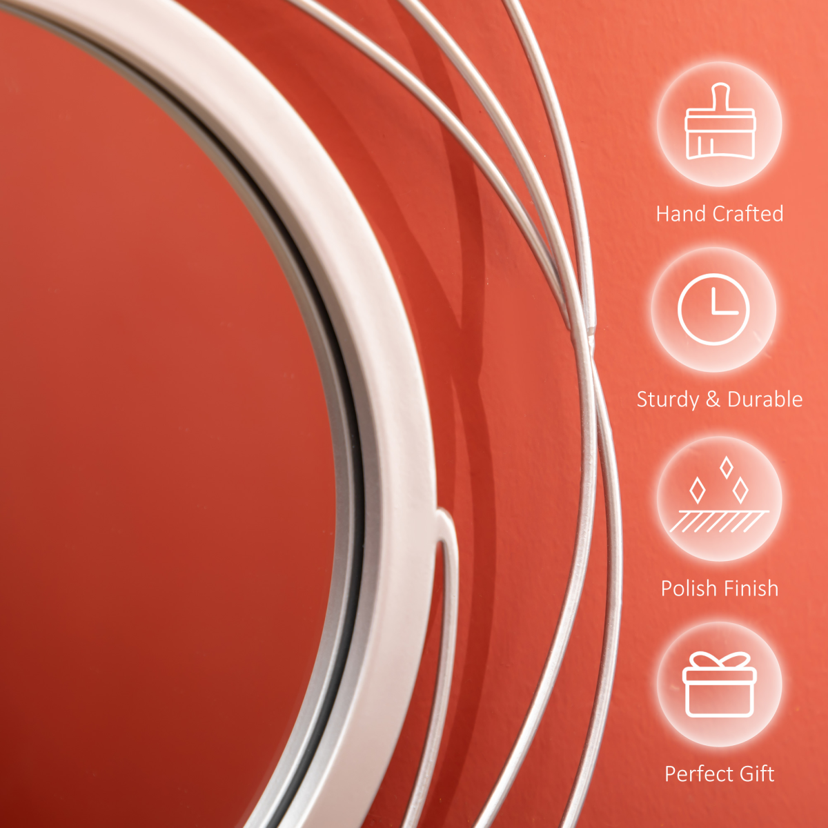 Metal Wall Art Decorative Mirror Decor Modern Wall Sculpture, Silver