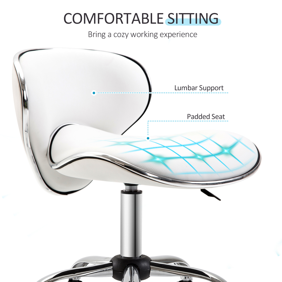 - "Office Chair Beauty Salon Rolling Technician Stool Chair Low Back White HOMCOM" - Description: - MODERN...