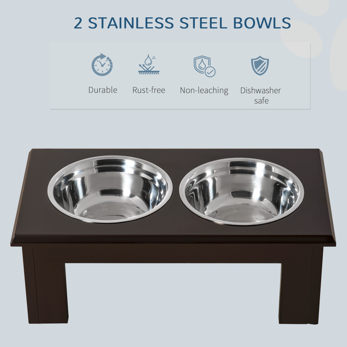 Raised Dog Bowls Pet Feeder Elevated Double Stainless Steel Water Brown Pawhut